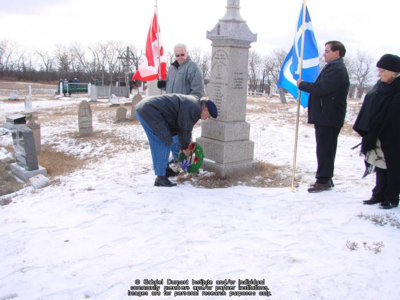 | Description: | Edwin St. Pierre laying a wreath at the Batoche memorial, Louis Riel Day, 2008. |