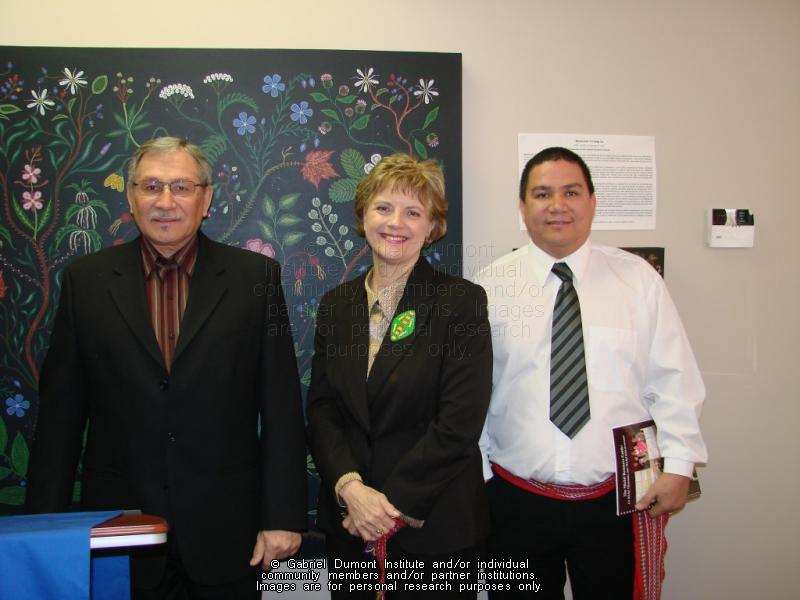 | Description: | Allan Morin, Carol Skelton and Gabe Lafond at the Michif Funding Press Conference for the Gabriel Dumont Institute, January 3, 2008.