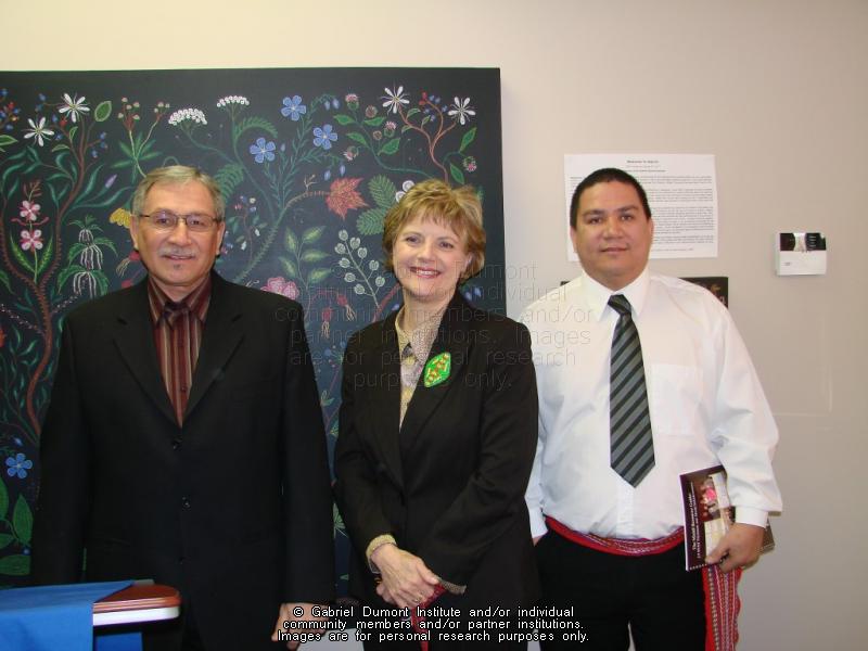 | Description: | Allan Morin, Carol Skelton and Gabe Lafond at the Michif Funding Press Conference for the Gabriel Dumont Institute, January 3, 2008.