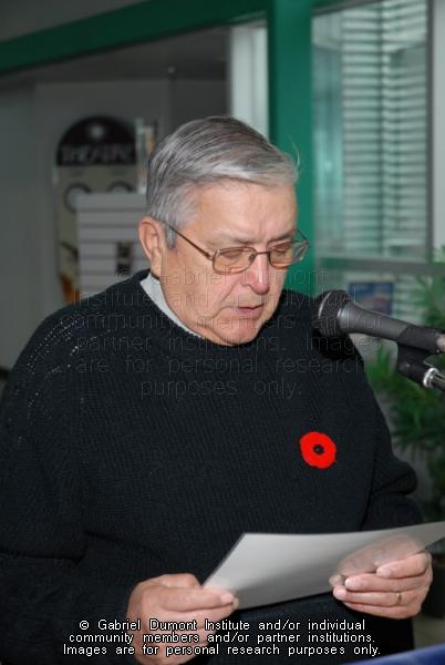 | Description: | Métis veteran Wilbur Fisher at Louis Riel and Métis Veterans Day. |