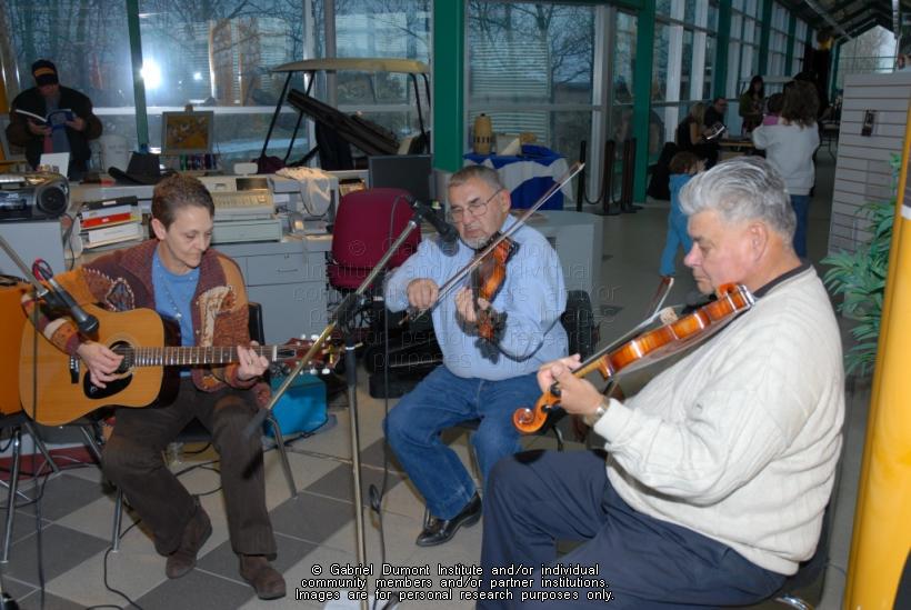 | Description: | Vicki Arcand, Lenny Dumont and John Arcand at Louis Riel and Métis Veterans Day. |