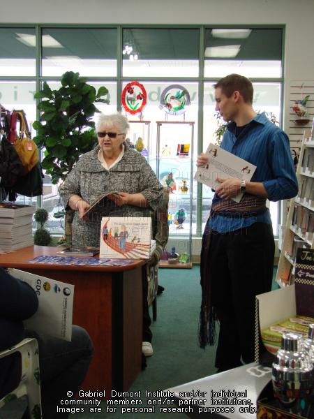 | Description: | Jean Pelletier and David Morin at The Story of the Rabbit Dance book launch. |