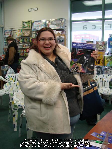 | Description: | Carrie Saganace at book launch of Stories of Our People: A Métis Graphic Novel Anthology. |