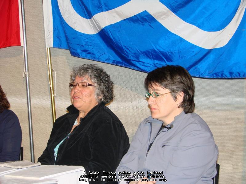 | Description: | Margaret Harrison and Nathalie Kermoal at Batoche Storytelling Circle hosted by Batoche National Historic Site, May 9, 2008. |