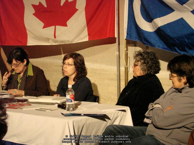 Sherry Farrell-Racette, Brenda McDougall, Margaret Harrison and Nathalie Kermoal at the Batoche Storytelling Circle hosted by Batoche National Historic Site, May 9, 2008. |