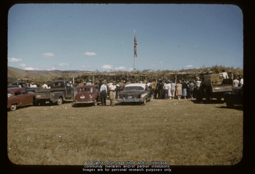 The big show - Sioux Pow Wow. This image has been graciously provided by the Saskatchewan History and Folklore Society, through executive director Finn Andersen, for use on this website, and is to be used for research purposes only. The reproduction of this image in whole or in part is strictly prohibited without the permission of the copyright holder. |