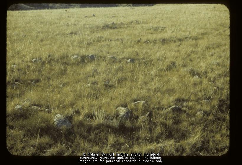 Indian Tent Rings--N. Rock Creek Canyon. This image has been graciously provided by the Saskatchewan History and Folklore Society, through executive director Finn Andersen, for use on this website, and is to be used for research purposes only. The reproduction of this image in whole or in part is strictly prohibited without the permission of the copyright holder. |