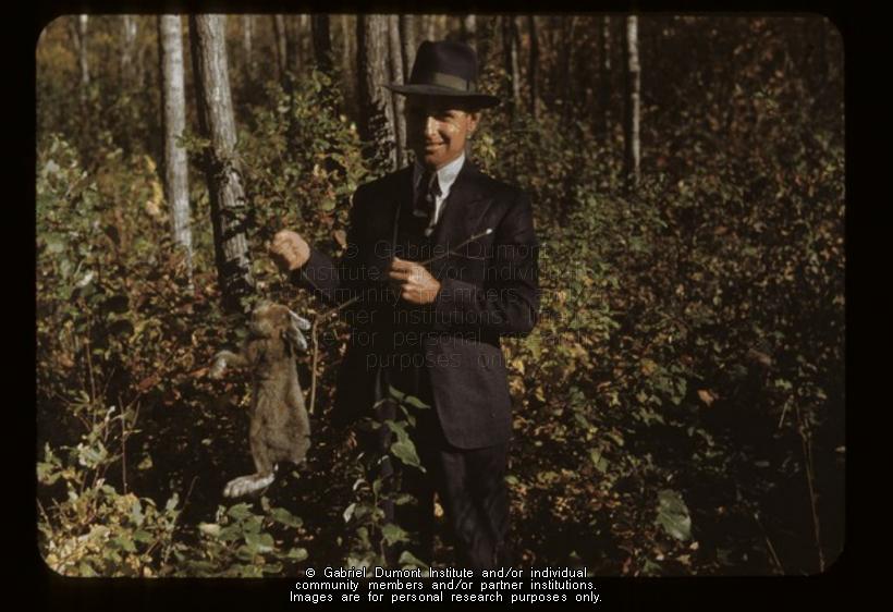 Bruce Buchanan holding Indian snared rabbit. This image has been graciously provided by the Saskatchewan History and Folklore Society, through executive director Finn Andersen, for use on this website, and is to be used for research purposes only. The reproduction of this image in whole or in part is strictly prohibited without the permission of the copyright holder.