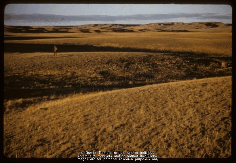Ralph Morrison and Indian tipi ring. This image has been graciously provided by the Saskatchewan History and Folklore Society, through executive director Finn Andersen, for use on this website, and is to be used for research purposes only. The reproduction of this image in whole or in part is strictly prohibited without the permission of the copyright holder. |