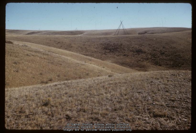 Teepee at Blackfoot Watch--looking SE. This image has been graciously provided by the Saskatchewan History and Folklore Society, through executive director Finn Andersen, for use on this website, and is to be used for research purposes only. The reproduction of this image in whole or in part is strictly prohibited without the permission of the copyright holder. |