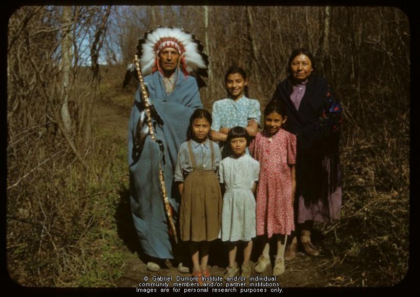 Johnny LeCaine and family. This image has been graciously provided by the Saskatchewan History and Folklore Society, through executive director Finn Andersen, for use on this website, and is to be used for research purposes only. The reproduction of this image in whole or in part is strictly prohibited without the permission of the copyright holder. |