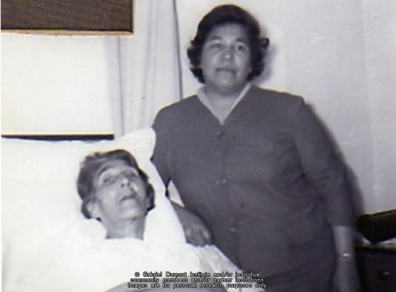 Description: Marie Adelle Chatelaine (wife of Louis Chatelaine, 1899-1956) and her daughter Margaret Poitras. This image is to be used for research purposes only. The reproduction of this image in whole or in part is strictly prohibited without the permission of the copyright holder. Copyright for this image belongs to Lawrence Arnault, and/or the person(s) in the photograph, and/or their descendants.