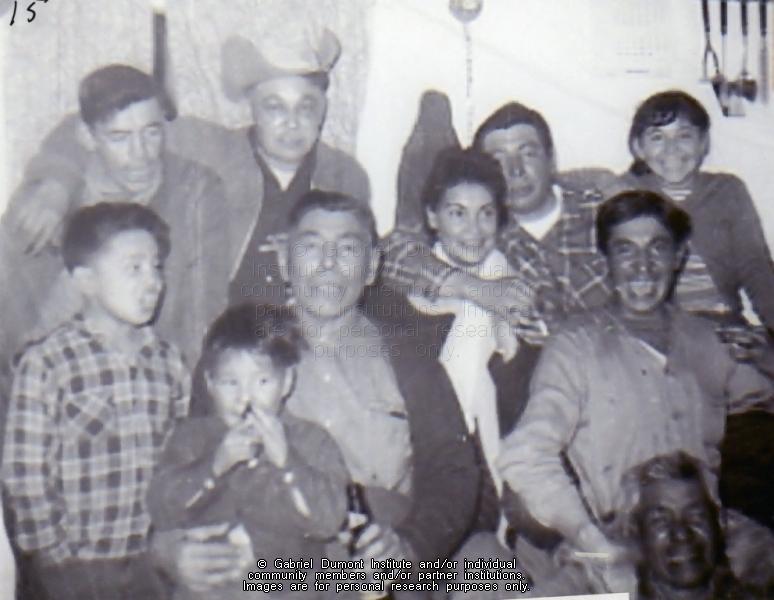 The two men at the top left are Johnny Nault and Val Poitras. The man at the bottom right is Duke Morin. Others, starting from left to right are: Blaine Chatelaine, Walter Chatelaine, Louis Chatelaine, Edith Durocher, Allan Chatelaine, Ray Chatelaine and his sister Florence. This image is to be used for research purposes only. The reproduction of this image in whole or in part is strictly prohibited without the permission of the copyright holder. Copyright for this image belongs to Lawrence Arnault, and/or the person(s) in the photograph, and/or their descendants. |