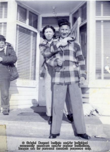 Description: Partially at left is Etienne DeLaronde. Mary Fulton behind Robert Aubichon.Robert was the son of Emile Aubichon and Vicky Morin. This image is to be used for research purposes only. The reproduction of this image in whole or in part is strictly prohibited without the permission of the copyright holder. Copyright for this image belongs to Lawrence Arnault, and/or the person(s) in the photograph, and/or their descendants.