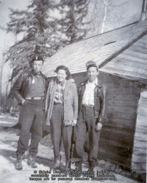 George Jake Merasty, Celeste Vallee and Arthur Merasty. This image is to be used for research purposes only. The reproduction of this image in whole or in part is strictly prohibited without the permission of the copyright holder. Copyright for this image belongs to Lawrence Arnault, and/or the person(s) in the photograph, and/or their descendants. |