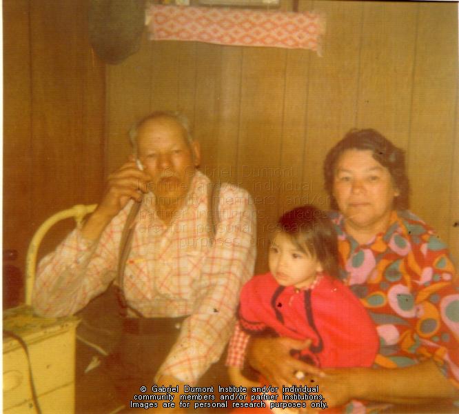 Alex Morin of Green Lake, SK with daughter Sophie and granddaughter Marlene. The reproduction of this image in whole or in part is strictly prohibited without the permission of the copyright holder. Copyright for this image belongs to Lawrence Arnault, and/or the person(s) in the photograph, and/or their descendants. |