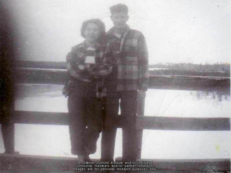 Mary Jane Morin with Lawrence Bishop (1930-1955). This image is to be used for research purposes only. The reproduction of this image in whole or in part is strictly prohibited without the permission of the copyright holder. Copyright for this image belongs to Lawrence Arnault, and/or the person(s) in the photograph, and/or their descendants. |