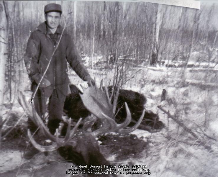 Description: Charles Arnault with a moose he shot in about 1960. This image is to be used for research purposes only. The reproduction of this image in whole or in part is strictly prohibited without the permission of the copyright holder. Copyright for this image belongs to Lawrence Arnault, and/or the person(s) in the photograph, and/or their descendants.
