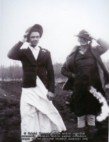 Charles Arnault (1923-1996) and Benny Fiddler being silly. Benny was an uncle to Evelyn Fiddler who married Charles in 1947. The reproduction of this image in whole or in part is strictly prohibited without the permission of the copyright holder. Copyright for this image belongs to Lawrence Arnault, and/or the person(s) in the photograph, and/or their descendants. |