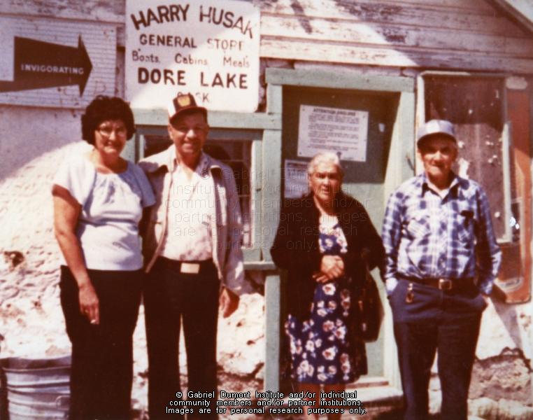 Description: Alphonsine Laliberte, her husband Fred Laliberte and her parents Albertine and Harry Roy. The reproduction of this image in whole or in part is strictly prohibited without the permission of the copyright holder. Copyright for this image belongs to Lawrence Arnault, and/or the person(s) in the photograph, and/or their descendants.