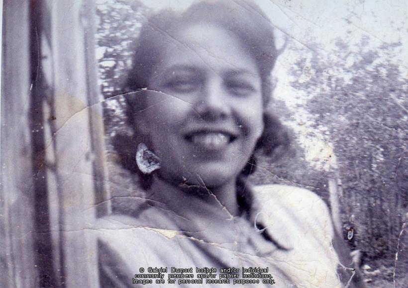 Bessie Morin (Arnault). Bessie was born January 9, 1931 and passed away October 25, 2007. She was the daughter of Fred Arnault and Rosa Lafond, and wife of Alex Morin of Ile a la Crosse, SK. Alex and Bessie lived in Hay River, NWT for many years and later in St. Albert, AB. This image is to be used for research purposes only. The reproduction of this image in whole or in part is strictly prohibited without the permission of the copyright holder. Copyright for this image belongs to Lawrence Arnault, and/or the person(s) in the photograph, and/or their descendants. |