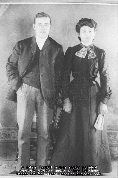 | Description: | This is an image of Joseph Nault and Rose Anna Perreault. Rose Anna Perreault was the daughter of Mathilde Carrière who was in turn the daughter of André Carrière and Angèlique Dion. André Carrière was descended from Jeanne Nipissing while Angèlique`s mother is recorded as ``une femme Cree.``