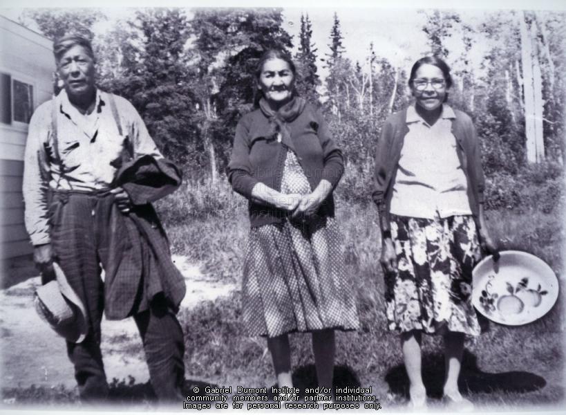 Description: Pedro Lachance from Waterhen Lake First Nation with Christine Durocher and Peepeese Running-Around. This image is to be used for research purposes only. The reproduction of this image in whole or in part is strictly prohibited without the permission of the copyright holder. Copyright for this image belongs to Lawrence Arnault, and/or the person(s) in the photograph, and/or their descendants.