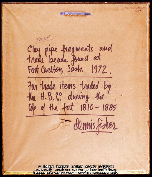 Fort Carlton, Kaoline Pipe Stems, Trade Beads, HBC, Fur Trade, Fisher, Dennis, Jean |
