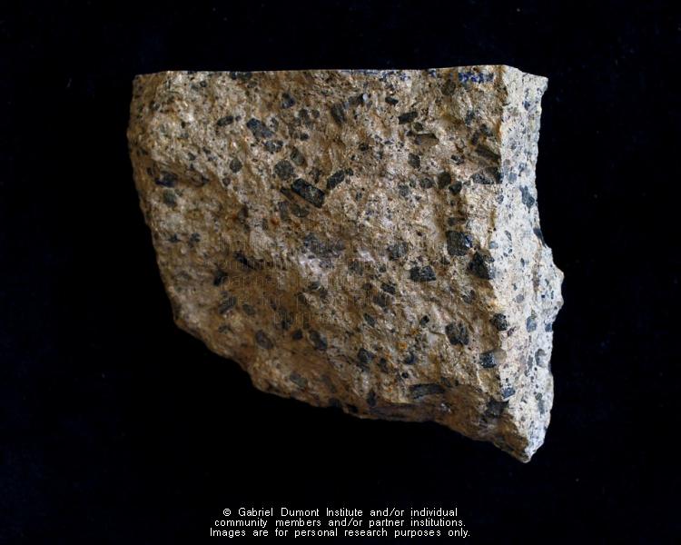 This image (by Peter Beszterda) is of one of three stone fragments collected from St. Peter's Mission  School in Montana. Louis Riel taught at this mission in the mid-1880s. They were collected by Dennis and Jean Fisher and their sons in 1974. They are part of the Dennis and Jean Fisher Collection. This collection contains archaeological artifacts taken from the battlefields of the 1885 Resistance as well as Fort Pitt (Saskatchewan), Cumberland House (Saskatchewan) and St. Peter's Mission, Montana. The collection also includes various artifacts and ephemera relating to the 1885 Resistance and Gabriel Dumont. |