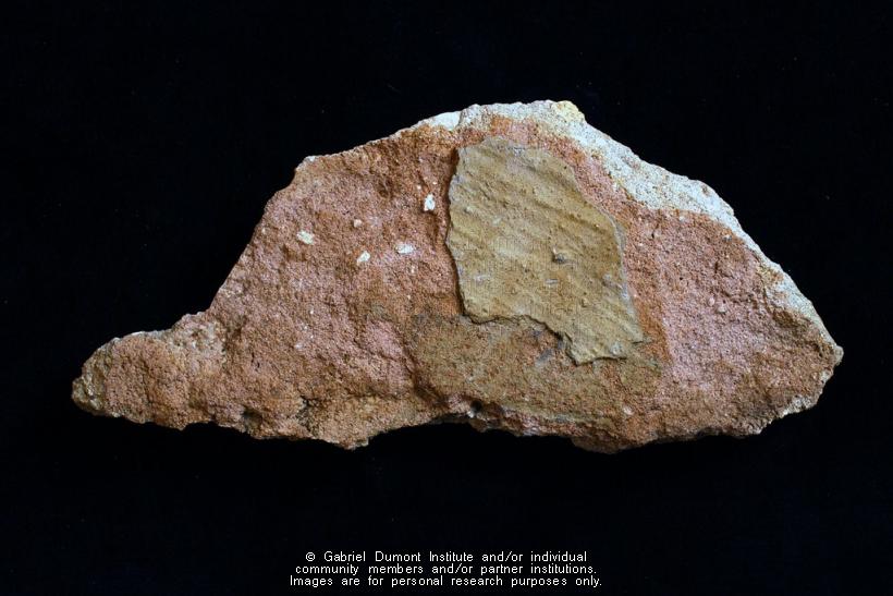 This image (by Peter Beszterda) is of a piece of willow-chinked plaster from Batoche. It was collected by Dennis and Jean Fisher and their sons in late 1960s or early 1970s. It is part of the Dennis and Jean Fisher Collection. This collection contains archaeological artifacts taken from the battlefields of the 1885 Resistance as well as Fort Pitt (Saskatchewan), Cumberland House (Saskatchewan) and St. Peter’s Mission, Montana. The collection also includes various artifacts and ephemera relating to the 1885 Resistance and Gabriel Dumont. |