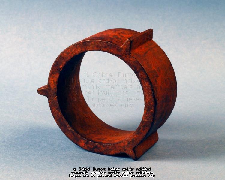 This image (by Peter Beszterda) is of a Red River Cart cast-iron hub. It was collected by Dennis and Jean Fisher in 1973 or 1975. It is part of the Dennis and Jean Fisher Collection. This collection contains archaeological artifacts taken from the battlefields of the 1885 Resistance as well as Fort Pitt (Saskatchewan), Cumberland House (Saskatchewan) and St. Peter’s Mission, Montana. The collection also includes various artifacts and ephemera relating to the 1885 Resistance and Gabriel Dumont. |