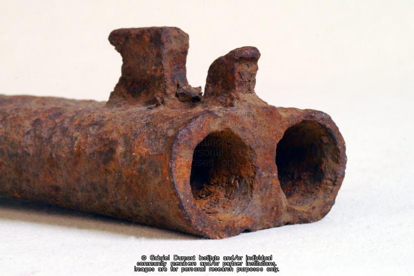 | Description: | This image (by Peter Beszterda) is of a rusted .12 gauge double shotgun barrel that was found at Tourond's Coulee and was likely used by Métis forces during the Battle of Tourond's Coulee/Fish Creek. It was collected by Dennis and Jean Fisher and their sons in late 1960s or early 1970s. It is part of the Dennis and Jean Fisher Collection. This collection contains archaeological artifacts taken from the battlefields of the 1885 Resistance as well as Fort Pitt (Saskatchewan), Cumberland House (Saskatchewan) and St. Peter's Mission, Montana. The collection also includes various artifacts and ephemera relating to the 1885 Resistance and Gabriel Dumont. |