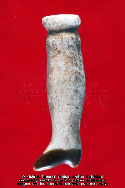 This image (by Peter Beszterda) is of one of five porcelain doll fragments found at various locations in Batoche by Dennis and Jean Fisher and their sons in the early 1970s. The fragments appear to be from two dolls since they include the parts of two torsos. The dolls are made of porcelain and one torso seems to indicate that it was made in Japan in 1885. The doll fragments are part of the Dennis and Jean Fisher Collection. This collection contains archaeological artifacts taken from the battlefields of the 1885 Resistance as well as Fort Pitt (Saskatchewan), Cumberland House (Saskatchewan) and St. Peter’s Mission, Montana. The collection also includes various artifacts and ephemera relating to the 1885 Resistance and Gabriel Dumont. |