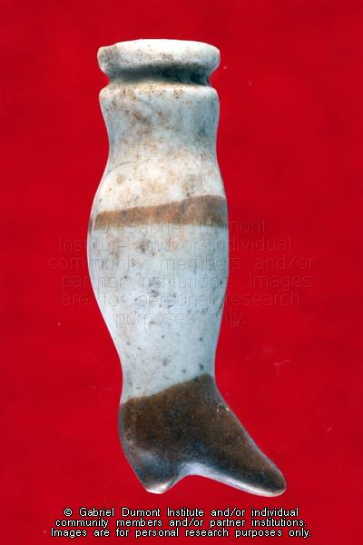 This image (by Peter Beszterda) is of one of five porcelain doll fragments found at various locations in Batoche by Dennis and Jean Fisher and their sons in the early 1970s. The fragments appear to be from two dolls since they include the parts of two torsos. The dolls are made of porcelain and one torso seems to indicate that it was made in Japan in 1885. The doll fragments are part of the Dennis and Jean Fisher Collection. This collection contains archaeological artifacts taken from the battlefields of the 1885 Resistance as well as Fort Pitt (Saskatchewan), Cumberland House (Saskatchewan) and St. Peter’s Mission, Montana. The collection also includes various artifacts and ephemera relating to the 1885 Resistance and Gabriel Dumont. |