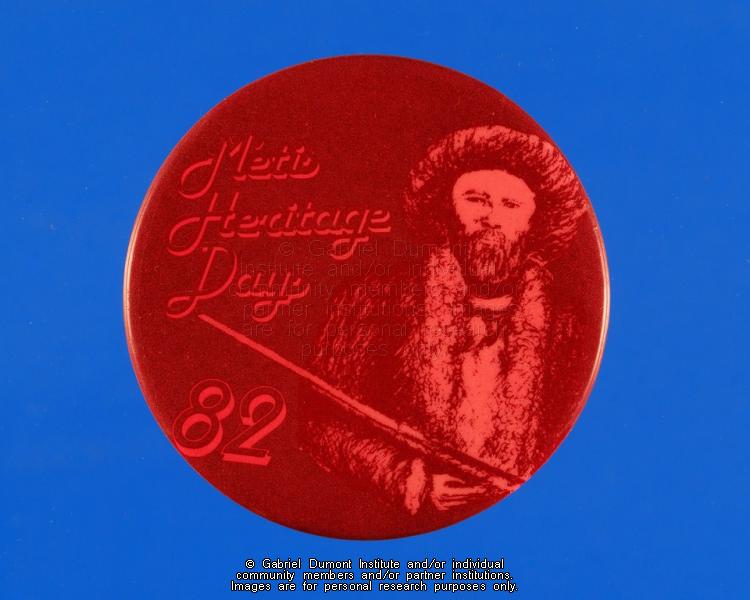 This image (by Peter Beszterda) is of a Métis Heritage Days 1982 button that was handed out at Back to Batoche Days. It is part of the Dennis and Jean Fisher Collection. This collection contains archaeological artifacts taken from the battlefields of the 1885 Resistance as well as Fort Pitt (Saskatchewan), Cumberland House (Saskatchewan) and St. Peter’s Mission, Montana. The collection also includes various artifacts and ephemera relating to the 1885 Resistance and Gabriel Dumont. |