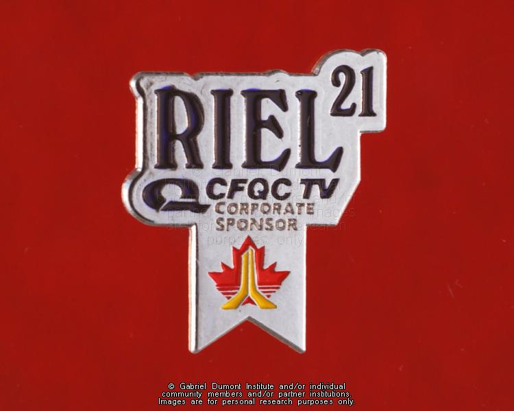 This image (by Peter Beszterda) is of a QC8 Riel Days Steel Pin from Saskatoon, Saskatchewan. Dennis Fisher was the long-time president of QC8, the CTV affiliate in Saskatoon. This pin is part of the Dennis and Jean Fisher Collection. This collection contains archaeological artifacts taken from the battlefields of the 1885 Resistance as well as Fort Pitt (Saskatchewan), Cumberland House (Saskatchewan) and St. Peter’s Mission, Montana. The collection also includes various artifacts and ephemera relating to the 1885 Resistance and Gabriel Dumont. |