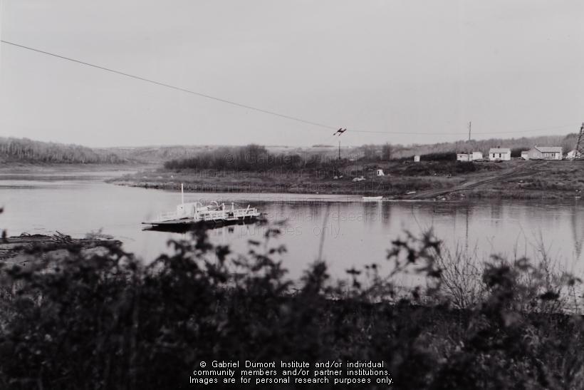This image, one of seven, taken by Dennis Fisher on October 23, 1968 shows the last crossing of Gabriel's Ferry near Batoche and Rosthern, Saskatchewan. The ferry closed with the opening of Gabriel's Bridge in that same year. These photographs are part of the Dennis and Jean Fisher Collection. This collection contains archaeological artifacts taken from the battlefields of the 1885 Resistance as well as Fort Pitt (Saskatchewan), Cumberland House (Saskatchewan) and St. Peter's Mission, Montana. The collection also includes various artifacts and ephemera relating to the 1885 Resistance and Gabriel Dumont. |