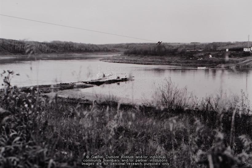 This image, one of seven, taken by Dennis Fisher on October 23, 1968 shows the last crossing of Gabriel's Ferry near Batoche and Rosthern, Saskatchewan. The ferry closed with the opening of Gabriel's Bridge in that same year. These photographs are part of the Dennis and Jean Fisher Collection. This collection contains archaeological artifacts taken from the battlefields of the 1885 Resistance as well as Fort Pitt (Saskatchewan), Cumberland House (Saskatchewan) and St. Peter's Mission, Montana. The collection also includes various artifacts and ephemera relating to the 1885 Resistance and Gabriel Dumont. |