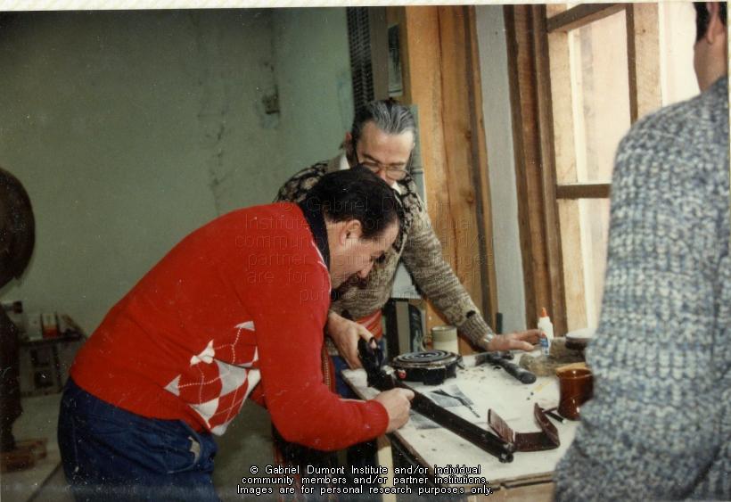 | Description: | In 1984, Saskatoon-based sculptor Bill Epp (brown sweater, pony tail) was commissioned by the Commemorate `85 corporation to sculpt a statue of Gabriel Dumont. In these photographs, Bill Epp (grey sweater) is working on the Gabriel Dumont statue in his workshop in February 1985. Still in plaster, the statue was awaiting casting in bronze at a nearby foundry. The statue was taken to Saskatoon from New Mexico to be unveiled during a special tribute to Gabriel Dumont on May 6, 1985. Later, the statue was taken to the Dumont family reunion at Duck Lake, and was later presented to Saskatoon City Hall on May 14, 1985.