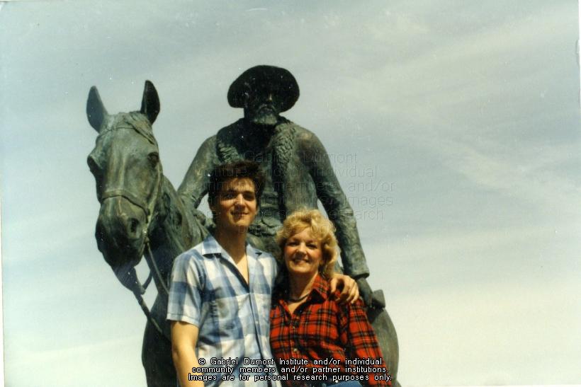 | Description: | This image of Jean Fisher and her son was taken at the Dumont family reunion held at Duck Lake in 1985. Dumont family members are appearing before a statue of Gabriel Dumont by sculptor Bill Epp. Bill Epp and Dennis Fisher took the statue to the family reunion before the statue was put in its final resting place in Friendship Park in Saskatoon.