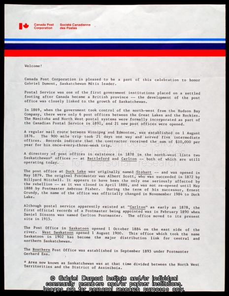 Dumont, Gabriel, Stamp Album, Pamphlet, 01 |