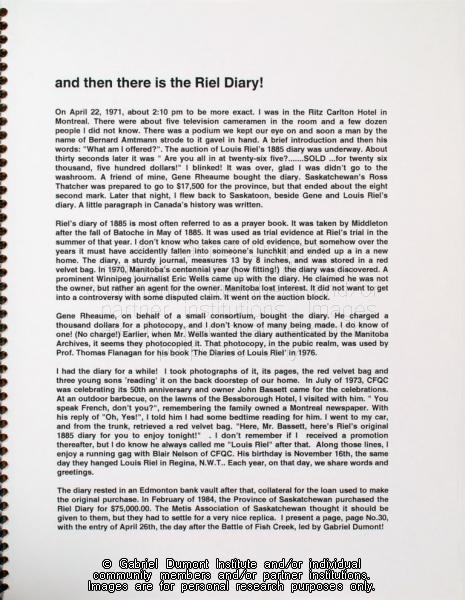 | Subject: | Riel, Louis, 1885 Resistance, Commemoration, Diary, Rheaume, Eugene, Fisher, Dennis, Jean |