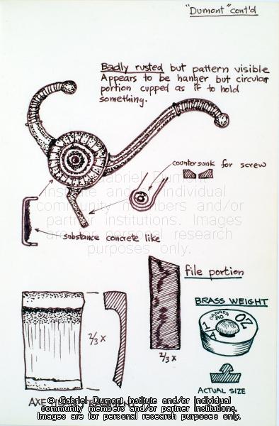 | Description: | In this page from his sketchbook, Dennis Fisher sketched items found at the Gabriel Dumont site in the early 1970s.