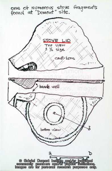 In this page from his sketchbook, Dennis Fisher sketched items found at the Gabriel Dumont site in the early 1970s. Dennis Fisher sketched the images in the sketchbook in the late 1970s, although one image sketched in 2008. During the 1960s and `70s, Dennis and Jean Fisher and their three sons visited various archaeological sites in Saskatchewan and Montana, and collected hundreds of artifacts relating to Métis history. Overtime, Dennis, a trained draftsperson, sketched many of these finds in this sketchbook, which relate to the 1885 battlefields at Batoche and Fish Creek (Tourond`s Coulee), Gabriel (Dumont)`s Crossing near Batoche, fur trade posts at Fort Carlton at Fort Pitt, and US military forts such as Fort Assinniboine near Havre, Montana. This sketchbook is part of the Dennis and Jean Fisher Collection. This collection contains archaeological artifacts taken from the battlefields of the 1885 Resistance as well as Fort Pitt (Saskatchewan), Cumberland House (Saskatchewan), and St. Peter`s Mission, Montana. The collection also includes various artifacts and ephemera relating to the 1885 Resistance and Gabriel Dumont.