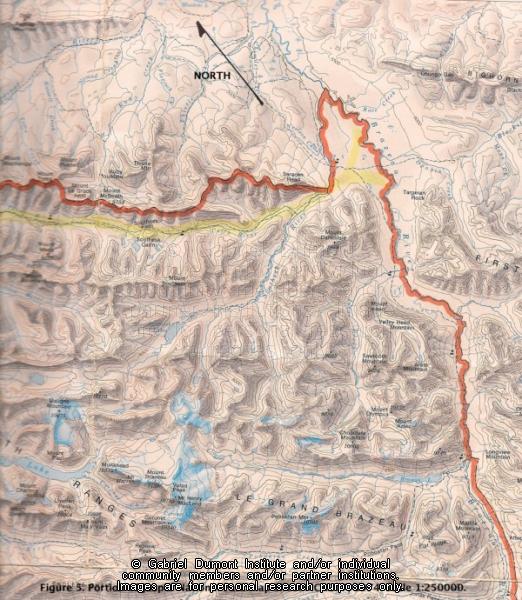 | Description: | Figure 5. Upper Brazeau River Valley winter range locale. Also shows the trail route between the upper Brazeau Valley and Southesk Pass. Portion of Jasper National Park Sheet MCR217. Canada Dept. of Energy, Mines and Resources, 1974. Scale of 1: 250000.