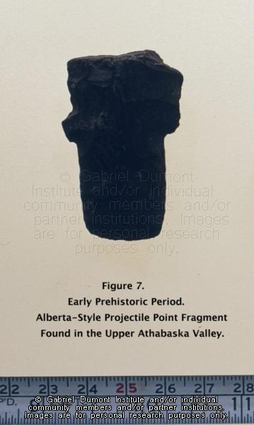 | Description: | Figure 7. Early Prehistoric Period Alberta-style projectile point fragment found in the Upper Athabasca Valley. From: Elliott 1970-71: 221.