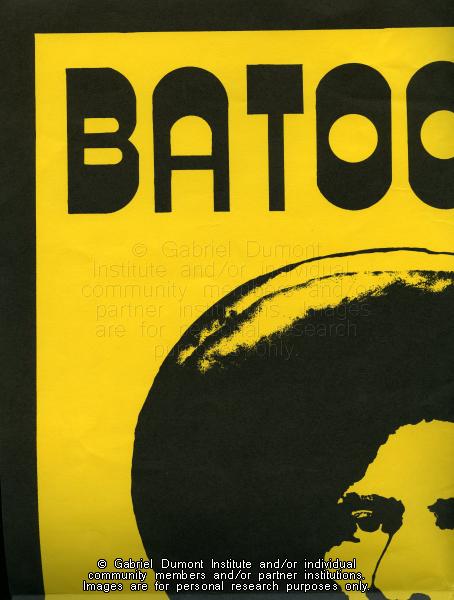 This series of images is a scan of a 1974 Back to Batoche poster produced by the Métis Society of Saskatchewan. This item was donated to the Institute by Dennis and Jean Fisher in 2011. This collection contains archaeological artifacts taken from the battlefields of the 1885 Resistance as well as Fort Pitt (Saskatchewan), Cumberland House (Saskatchewan) and St. Peter’s Mission, Montana. The collection also includes various artifacts and ephemera relating to the 1885 Resistance and Gabriel Dumont. |