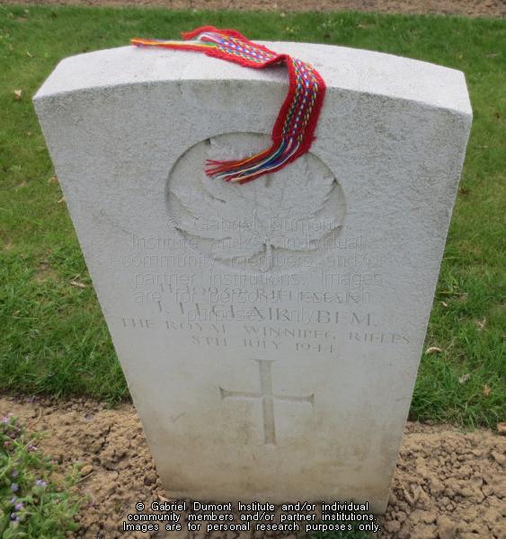 Gravestone of John Leclair, BEM (British Empire Medal), H.40939 Rifleman, The Royal Winnipeg Rifles. Died July 8th, 1944. |