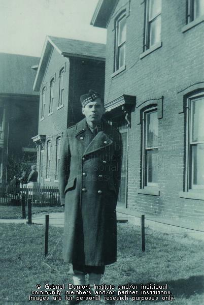 | Description: | This is a photograph of Clarence Joseph Trotchie, of Saskatoon, Saskatchewan, a WWII veteran, Royal Canadian Amoured Corps, enlisted in 1941 at 17, discharged underage, reenlisted., April 23, 1942, B-85244. |
