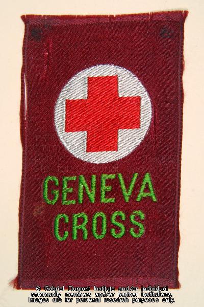 This image (by Peter Beszterda) is of a Geneva Cross tobacco silk manufactured by Imperial Tobacco circa 1910-1915. It was donated to the Institute in 2013. Louis Riel taught at this mission in the mid-1880s. This item is part of the Dennis and Jean Fisher Collection. These artifacts were donated to the Institute in 2013 by Dennis and Jean Fisher after their main donation two years previous. This collection contains archaeological artifacts taken from the battlefields of the 1885 Resistance as well as Fort Pitt (Saskatchewan), Cumberland House (Saskatchewan) and St. Peter`s Mission, Montana. The collection also includes various artifacts and ephemera relating to the 1885 Resistance and Gabriel Dumont. |